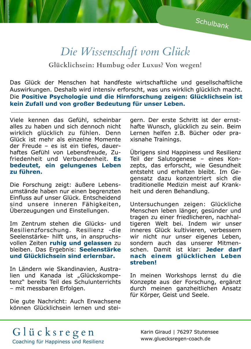 Coaching für Happiness und Resilienz